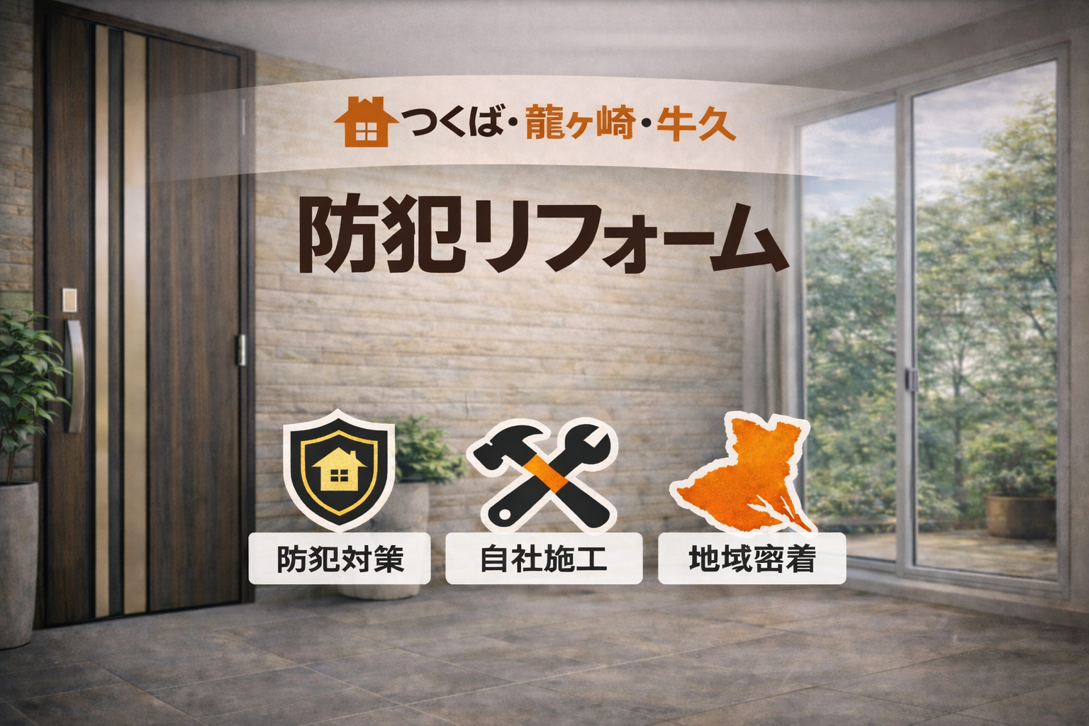 つくば市・土浦市・牛久市・龍ケ崎市・取手市・守谷市・つくばみらい市・阿見町など、茨城県南エリアでも、防犯意識の高まりとともにリフォーム相談が増えています。